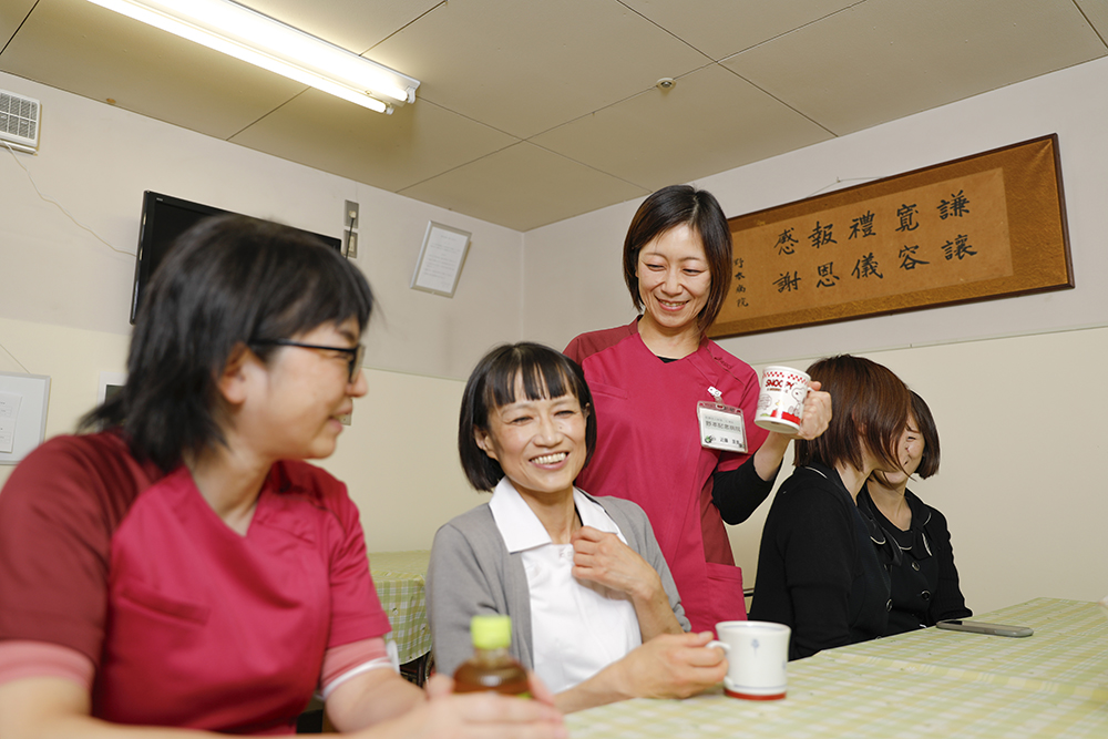 女性職員の割合が高く、管理職として活躍する女性も多く在籍しています。管理職以外の職員にも意見を発信できる場を設けており、会議やカンファレンスでは積極的な発言を歓迎し、良い提案は柔軟に取り入れています。また、院外研修への参加も積極的に支援しています。