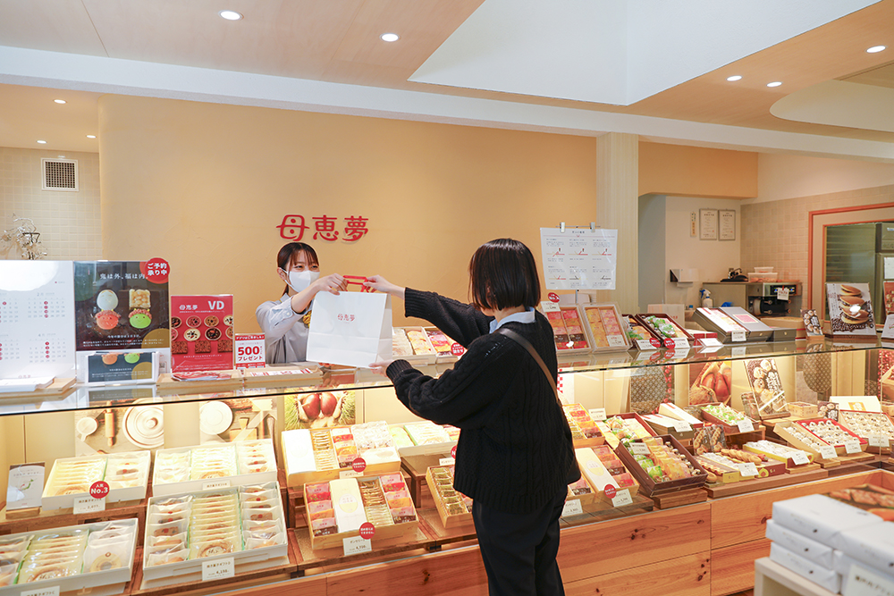昭和28(1953)年8月に、和洋菓子の製造販売店として今治市で創業しました。愛媛の銘菓として親しまれる「母恵夢」をはじめ、「ベビー母恵夢」「うずしおパイ」など、和洋菓子の製造を基盤としています。また、他社からの委託を受けて製造するOEM事業も幅広く展開しています。現在は、直営店3店舗と5か所の製造工場を運営し、多彩な商品づくりに取り組んでいます。