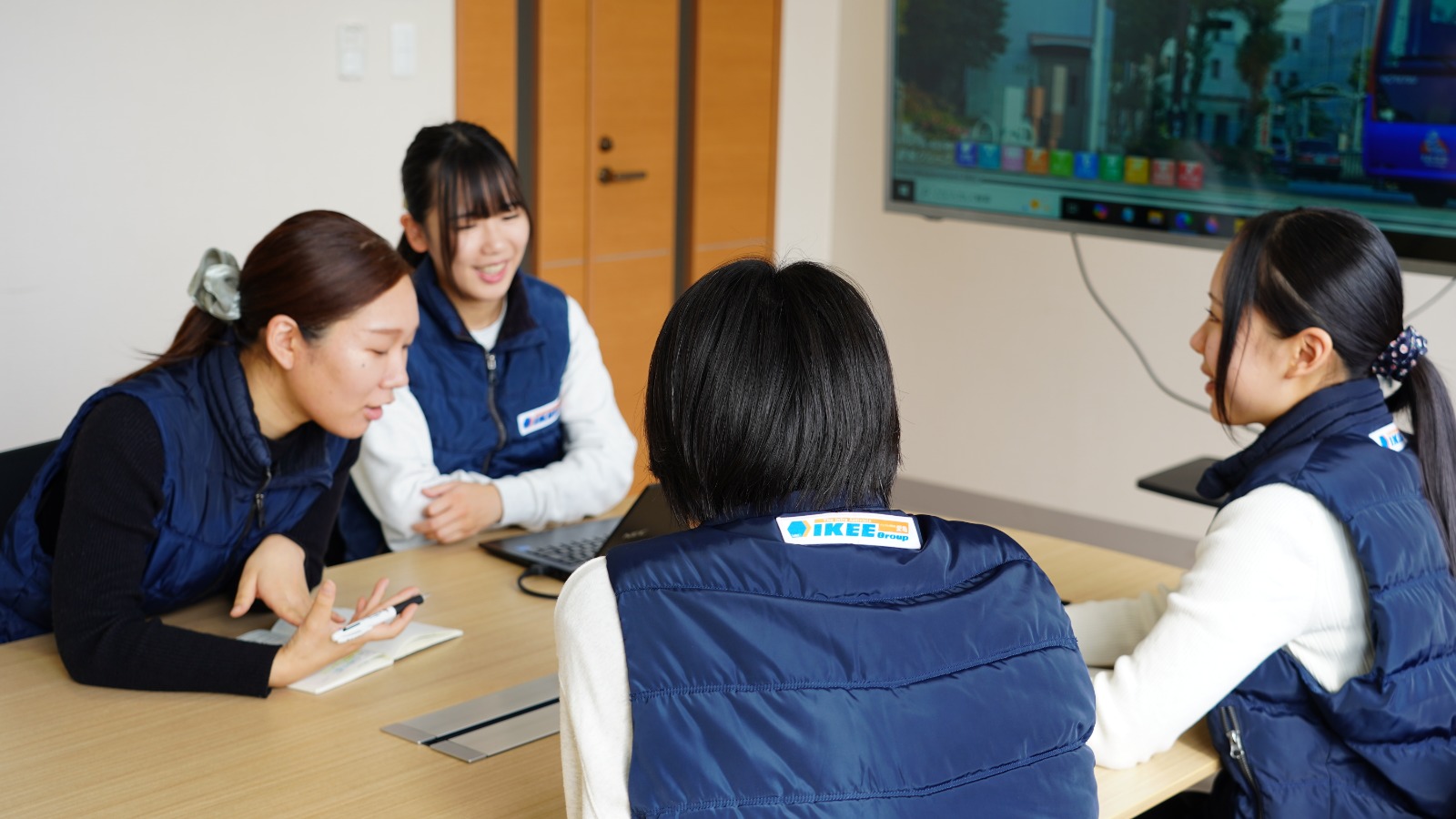 女性活躍の新職種として「建設ディレクター」を導入しています。建設ディレクターとは、ITとコミュニケーションスキルで現場を支援する新しい職域です。愛亀には現在、認定を受けた4名の建設ディレクターが在籍しています。今まで現場技術者が全て一人で行っていた業務の一部(書類作成、事務作業、DX・ICT)をバックオフィス化し、それらの専門家として担うことで、現場監督の負担を軽減や業務の効率化を実現。会社全体の就労時間の短縮にもつなげています。
