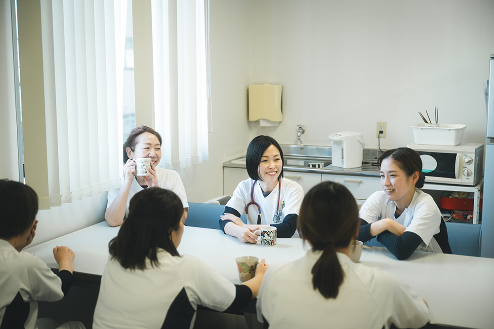 医師や同僚との人間関係が良好で、悩みが相談しやすいアットホームな雰囲気です。育児・介護と両立しやすいようライフステージに合わせて勤務形態の変更希望にも柔軟に対応し、ワークライフバランスを推進しています。誰もが安心して長く働ける職場環境を目指し、人材の定着に努めています。