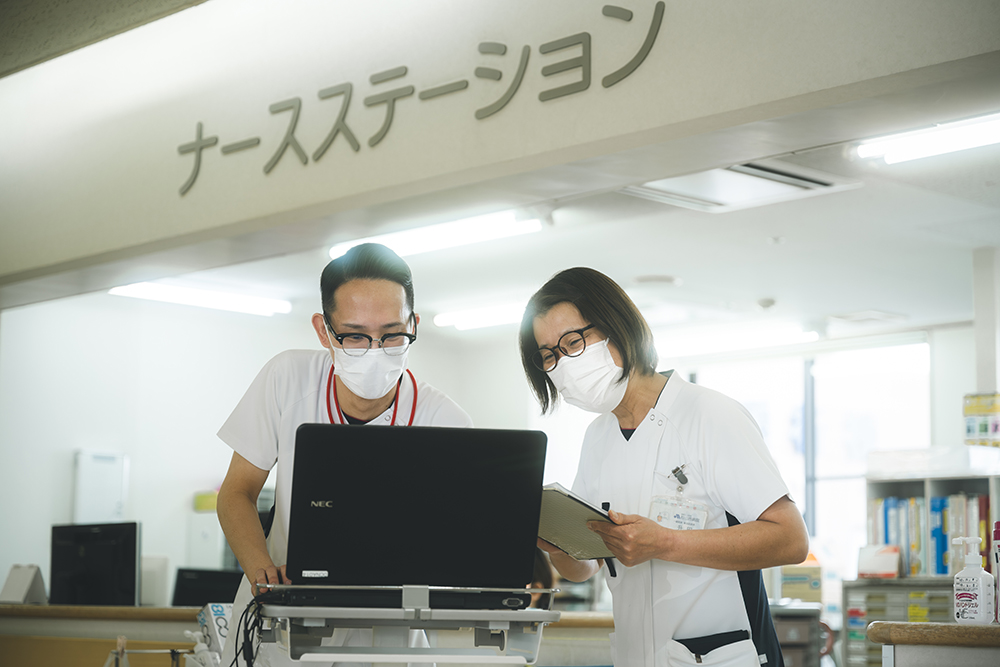 松山西病院では、男性の育児休暇取得を大前提としています。出産予定が分かり次第、総務から所属上長を経て、育児休業取得に関する書類と手続き方法を該当者へ案内し、本人の希望を聞き取ったうえで、上長や同僚と休業中の業務引き継ぎを行います。昨年度は該当者2名がいずれも取得し、次年度も早い段階で1名の取得を予定しています。