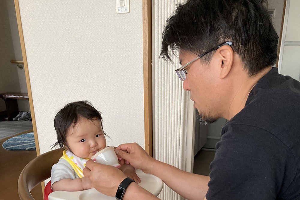 制度説明と取得意思確認をおこない、家族とも相談してもらい取得を検討していただいています。その際には、育休手当の試算・給与控除額・社会保険料免除など具体的な数値も出しています。