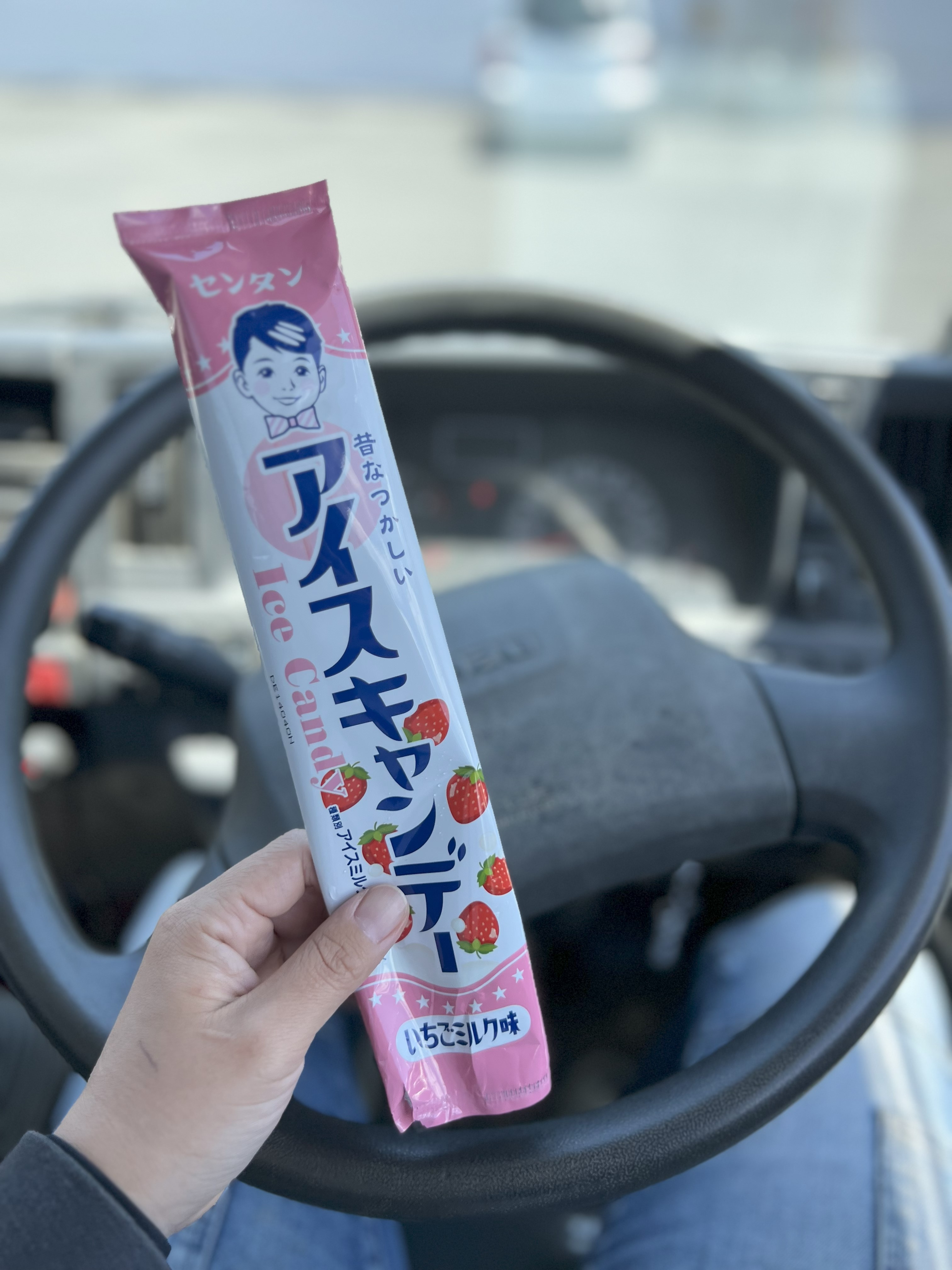 運転しながら食べられるおやつを持ち歩いて休憩中に食べます。