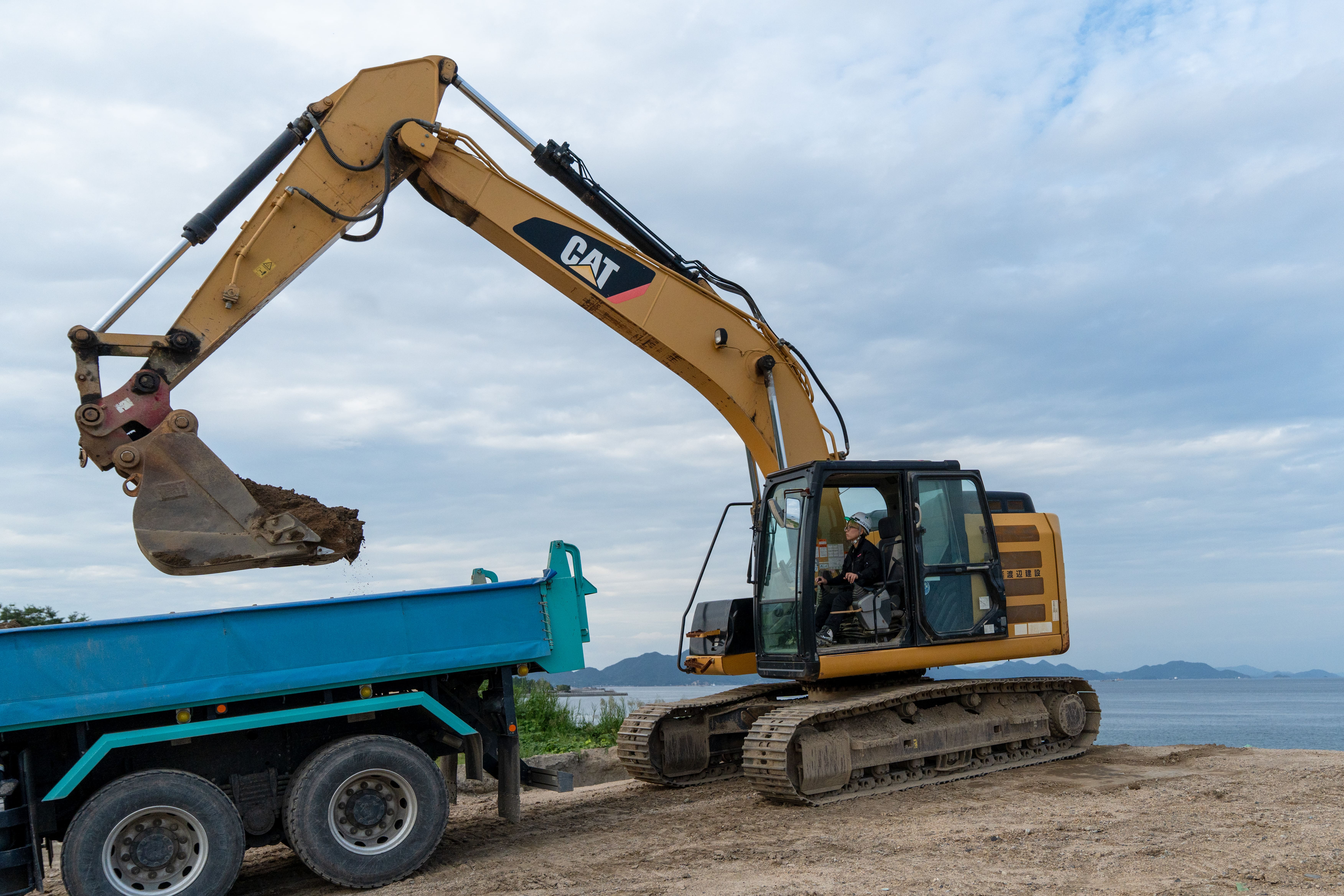 現場から土を出したり、必要な資材を運んだりといった作業を行います。運搬車での重機の回送や土木作業の手伝い、事務所で事務仕事をするときもあります。
