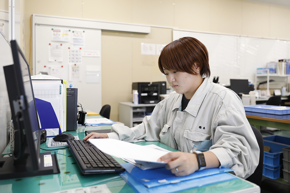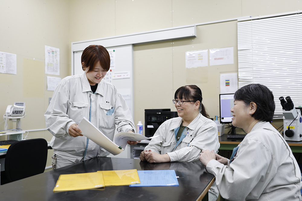 1年目から金属試験グループで品質管理の業務に携わり、3度の産休・育休を経て職場復帰。コスにじゅういちでは2人目の育休取得者でしたが、前例が少ない分、会社が柔軟に対応してくださり、とてもありがたく感じました。