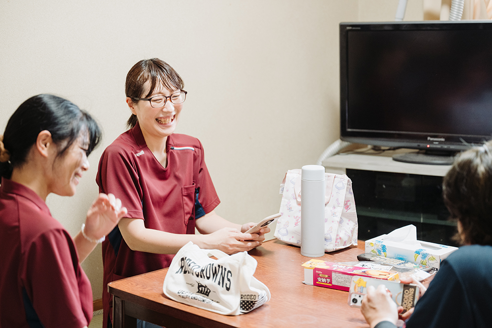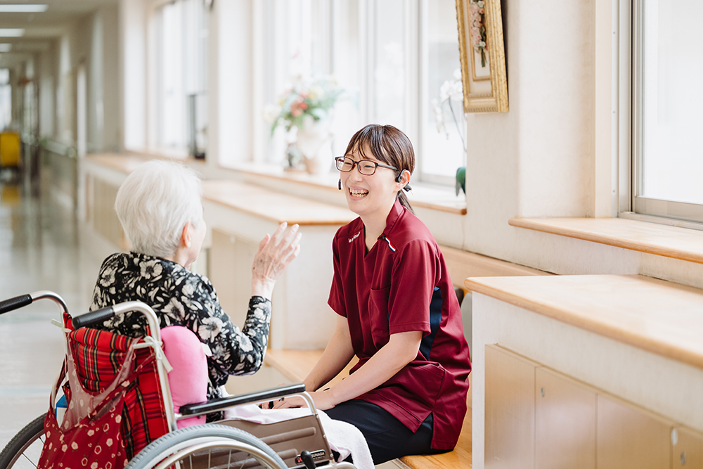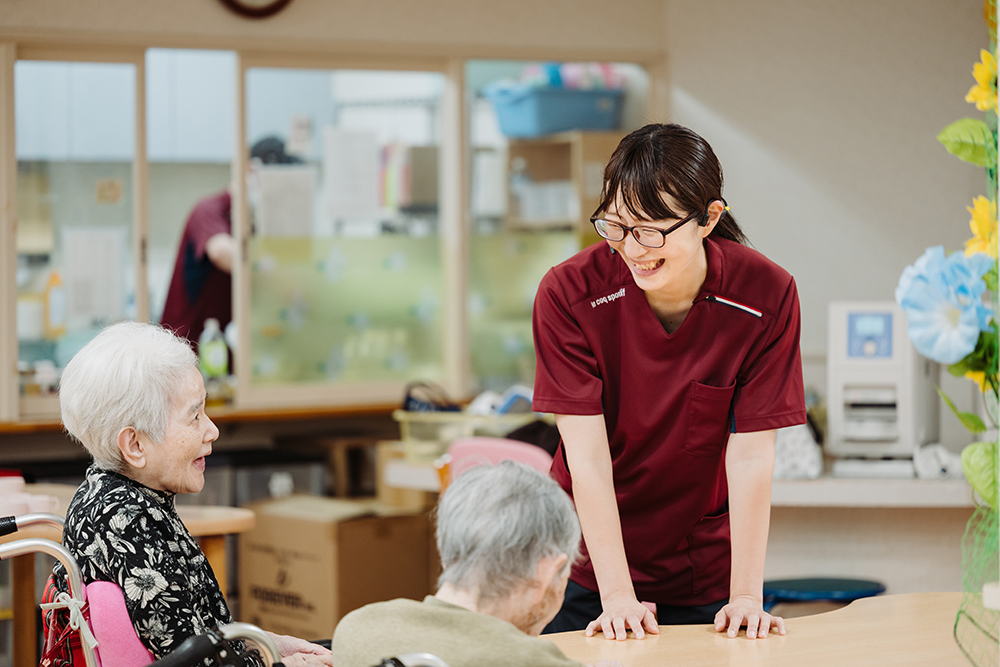 利用者さんの中に、私がフロア異動になった際泣いて寂しがってくださった方がいたんです。その方とはお話をする機会も少なかった印象でしたが、実は自分のことをとても信頼してくれていたんだな、と。離れてしまうのは寂しかったですが、改めて利用者さんからの想いを感じられてうれしかった出来事でしたね。