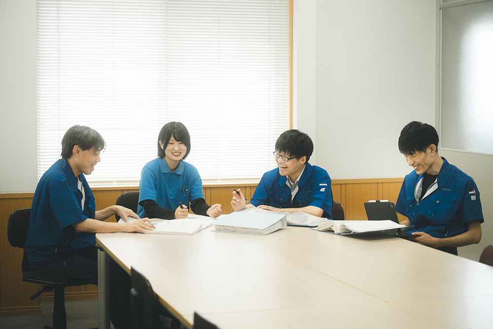 製造部の場合は入社後すぐに工場へと配属されますが、研究開発職や営業推進部の志望者は、製品が実際に使われる現場やユーザー視点を学ぶべく、入社後は必ず一度営業部配属の期間を経験します。また全社で男女問わず働きやすい勤務環境の整備も進んでおり、男性の育児休暇についても2023年度から3年連続で取得実績があります。女性だけでなく男性の育休取得も積極的に推奨されています。