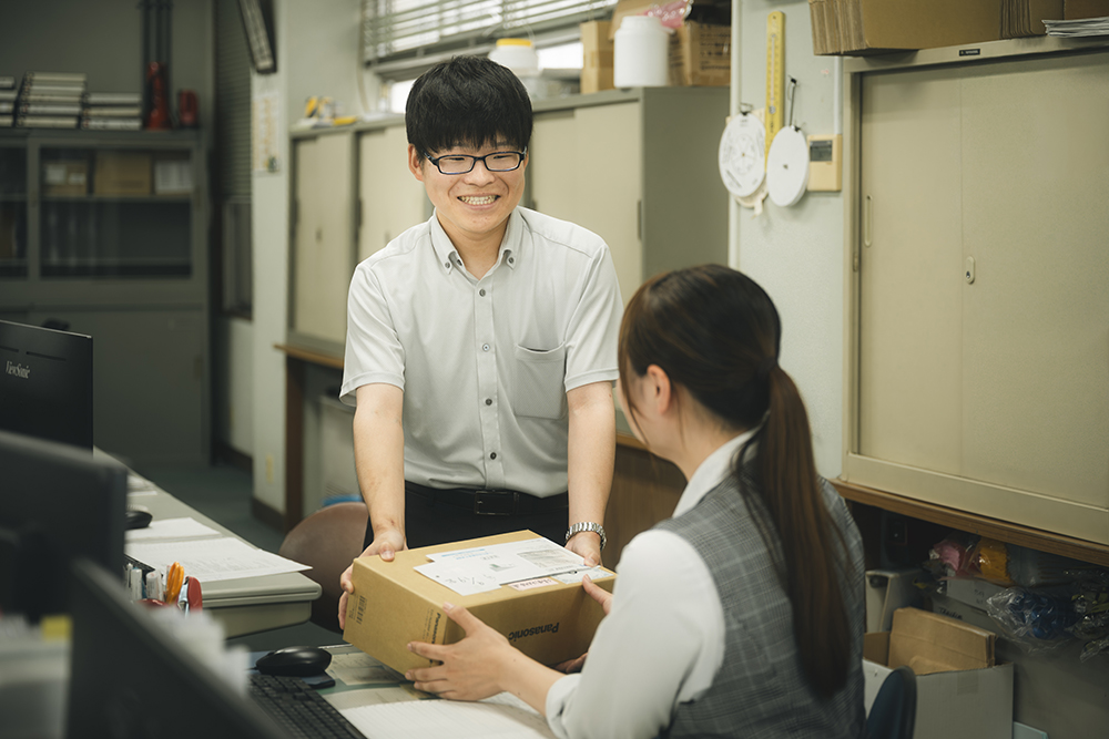 入社後数年間の営業部配属の期間を経て、昨年から念願の開発部へと配属された工藤さん。営業時代に培ったコミュニケーション力を存分に発揮しつつ、先輩の下でのサポート期間を経て、今年から一人前の製品開発担当者となったそう。「長年のお客様の中には、私より商品のことに詳しい方がいることも。時にはそんな方の胸を借りつつ、多くの方に愛されるような商品作りのために今後も努力を続けたい」と、実直な姿勢で日々業務に取り組んでいます。