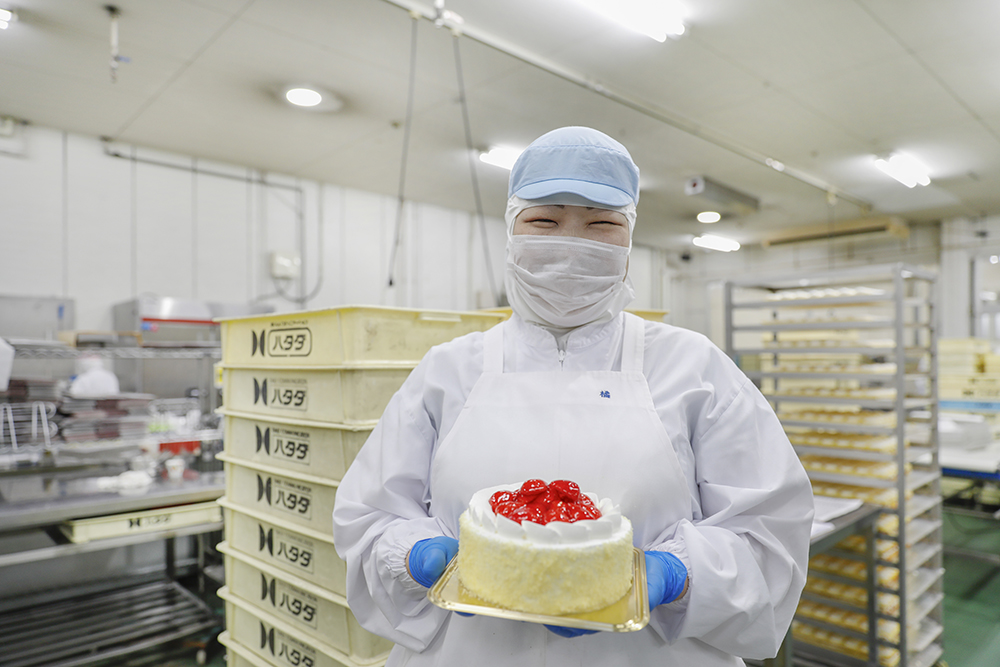 洋菓子部門として働いているからには、自分のケーキを作ってみたいという目標があります。これまで製造の現場で培ってきたことを活かし、開発にも携わっていきたいですね。ハタダは社員の「やってみたい」という前向きな姿勢を評価してくれるので、これからも前進あるのみで技術を磨き、新しいことに挑戦していきたいです。