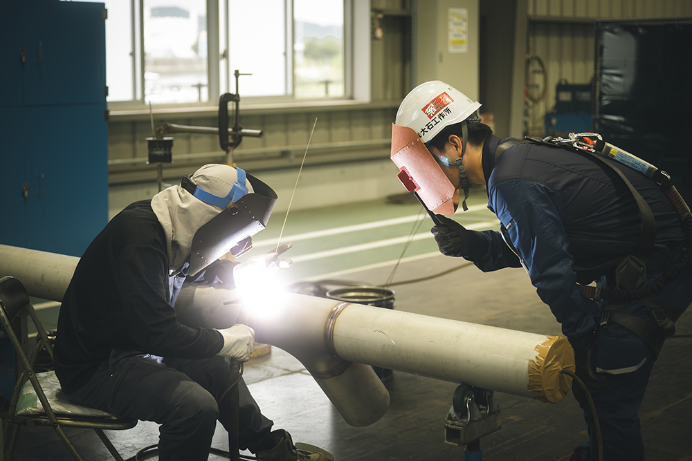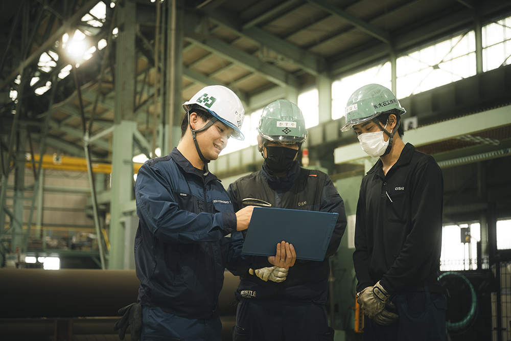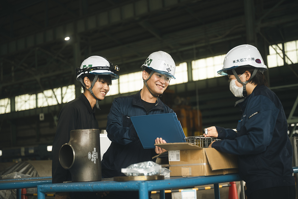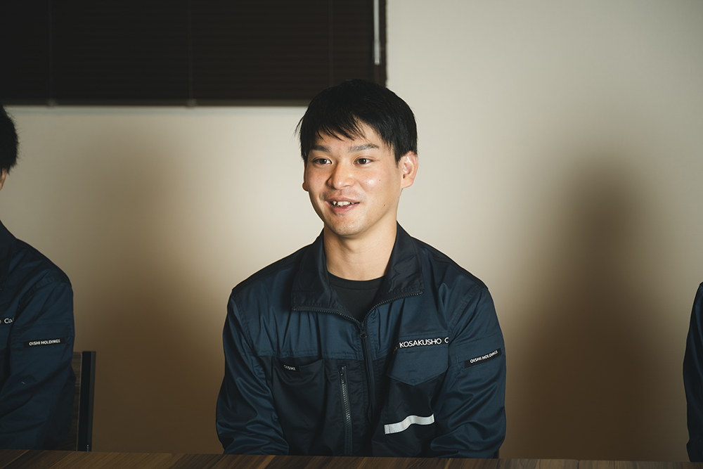 大学卒業後はできれば地元の東予に戻りたいと思っており、元々東予に住友化学さんの関連会社が多いイメージもあって、それをきっかけに大石工作所を知りました。まったく未経験の業界でしたが、会社説明会で出会った先輩社員の人柄の良さや、内定者フォローで入社前のギャップを減らす体制があった点も後押しになりましたね。