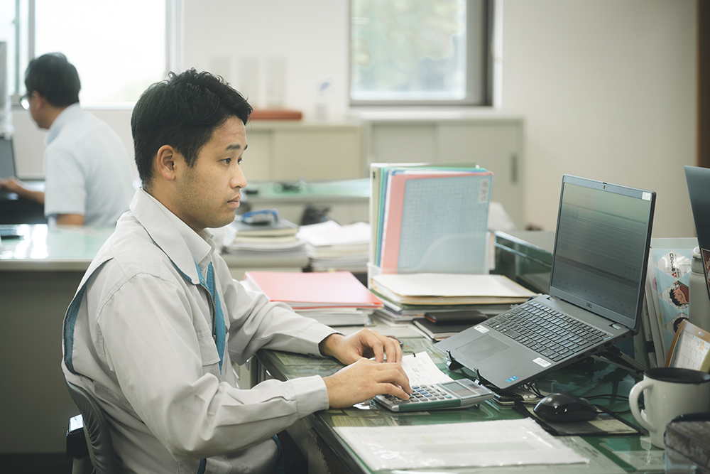 入社してから今日に至るまで、経理課一筋で働いている宮脇さん。商品の入出荷から社内の設備投資まで、日々さまざまな金銭管理業務に携わっています。お金に関わる仕事は責任の重いものや、失敗が許されないものがたくさん。「そんな中、周囲の上司や先輩に支えられてきた部分も大きいですね。主任という責任ある立場を任せてもらえるのも、周囲の人に恵まれたからこそ」と穏やかな笑顔を見せてくれました。