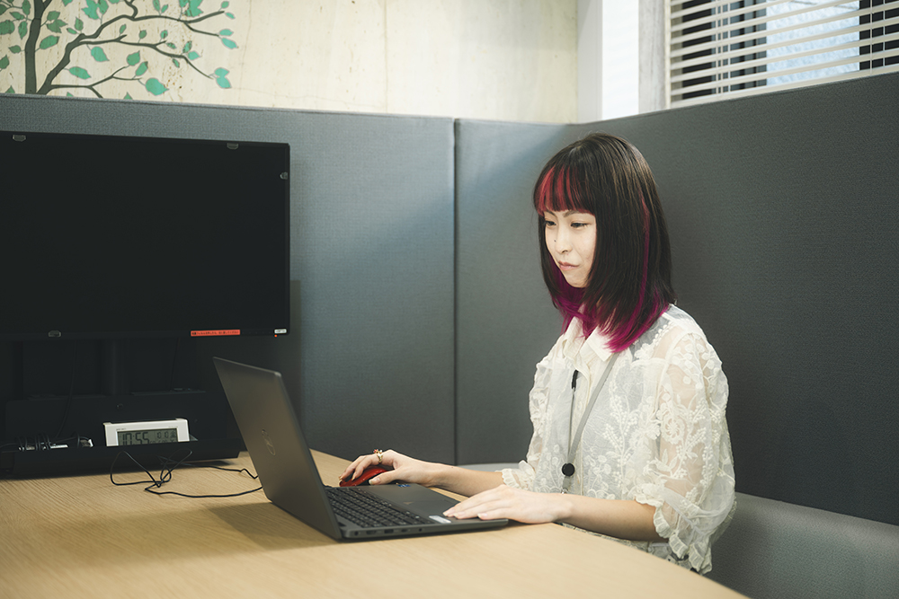 会社自体の特色として、様々な意味で個性豊かなメンバーが揃っています。中途入社の方が大半なので年齢層も20~60代と幅広く、加えて服装も自由度高めです。女性率も高いですね。松山の部署は全社員の75%が女性です。在宅勤務やテレワークを駆使して働いてる人も多く、社員の約3割は完全在宅勤務を導入していますよ。