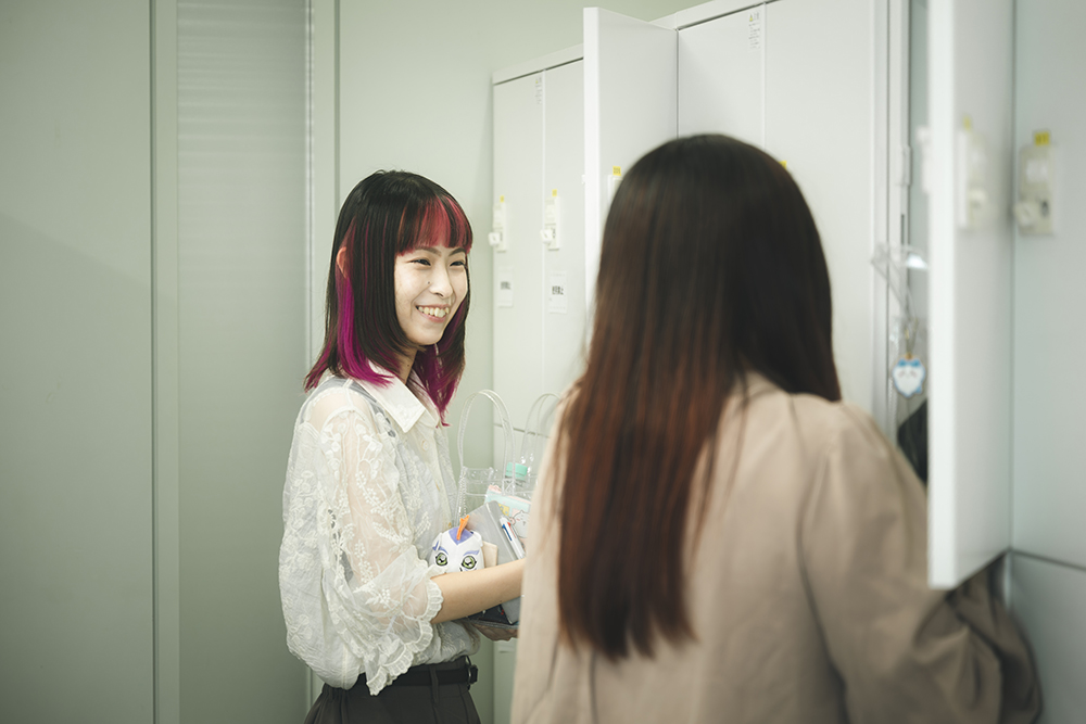 先輩と一緒にお喋りをしながら帰ります。 コミュニケーションを大事にしています。