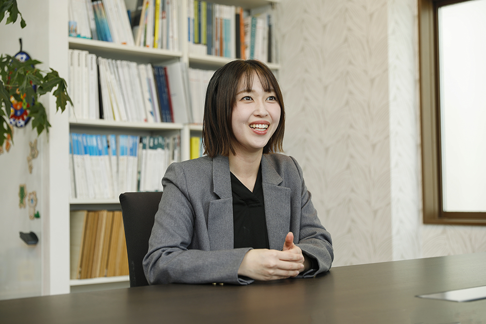 住宅の建築やリフォームの仕事に就きたいと思い、専門知識がなくても受け入れてくれる建設会社を探しました。知人の紹介で相中組に入社し、建築の専門知識や経験がゼロの状態から、事務・広報・営業アシスタントなど、さまざまな部署で業務を経験。現在は資格取得にも挑戦しています。