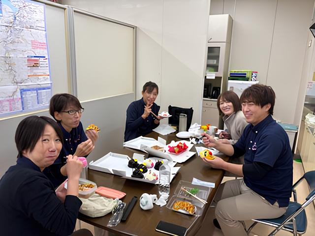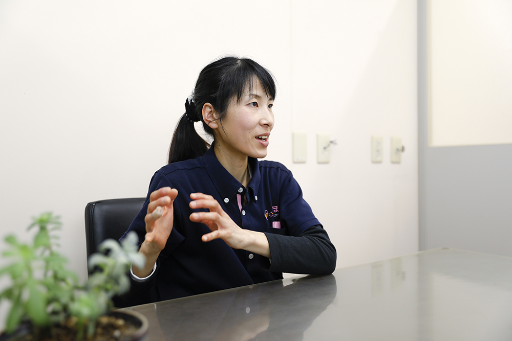 正社員として働きながら子育てを経験してきた先輩がたくさんいるので、仕事のことや子育てについても様々なアドバイスをいただけるし、サポートもしていただいています。入社後すぐは子どものことで急なお休みをいただくことに躊躇がありましたが、社内風土が「お互いさま」という考え方でフォローし合い、特別休暇もあるので無理なく働けています。地域密着型なので、街中で利用者さんのご家族と会うと声を受けてもらったりするのも嬉しいです。