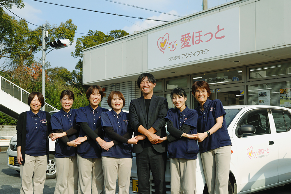 今治の病院に5年ほど勤めていた時、最後の2年間は部門異動で訪問リハビリをしていました。その時に、個々の利用者さんに寄り添い、介護するご家族にも寄り添う訪問リハビリの仕事にやりがいを感じていました。夫の転職に伴って宇和島に引っ越ししてきた時に訪問リハビリができる職場を探していて、福利厚生も充実しているアクティブモアに就職しました。