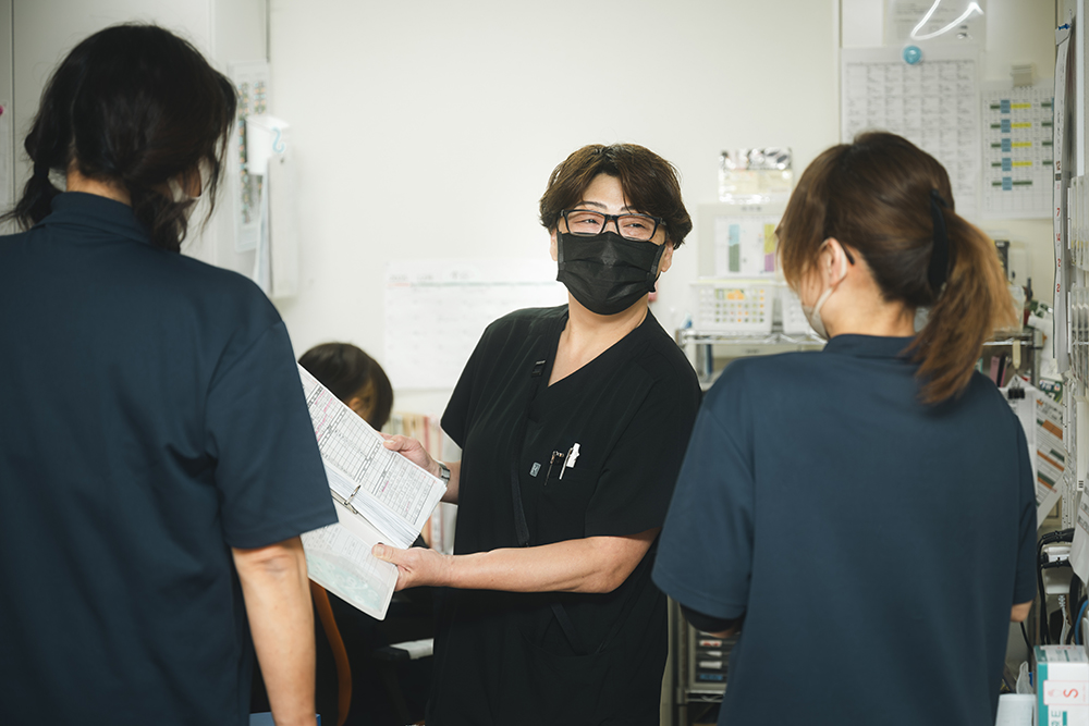 中学時代の入院経験をきっかけに、看護師の道を志しました。専門学校卒業後は整形外科に勤務していましたが、12年目に院長が急逝し閉院。その後、現在の施設開業にあたり当時主任を務めていた方が、中学時代に入院した病院で出会った先輩であったことから「手伝ってくれないか」と声をかけていただいたのが入社のきっかけです。入社当初はパート勤務でしたが、その後、正社員へキャリアアップしました。