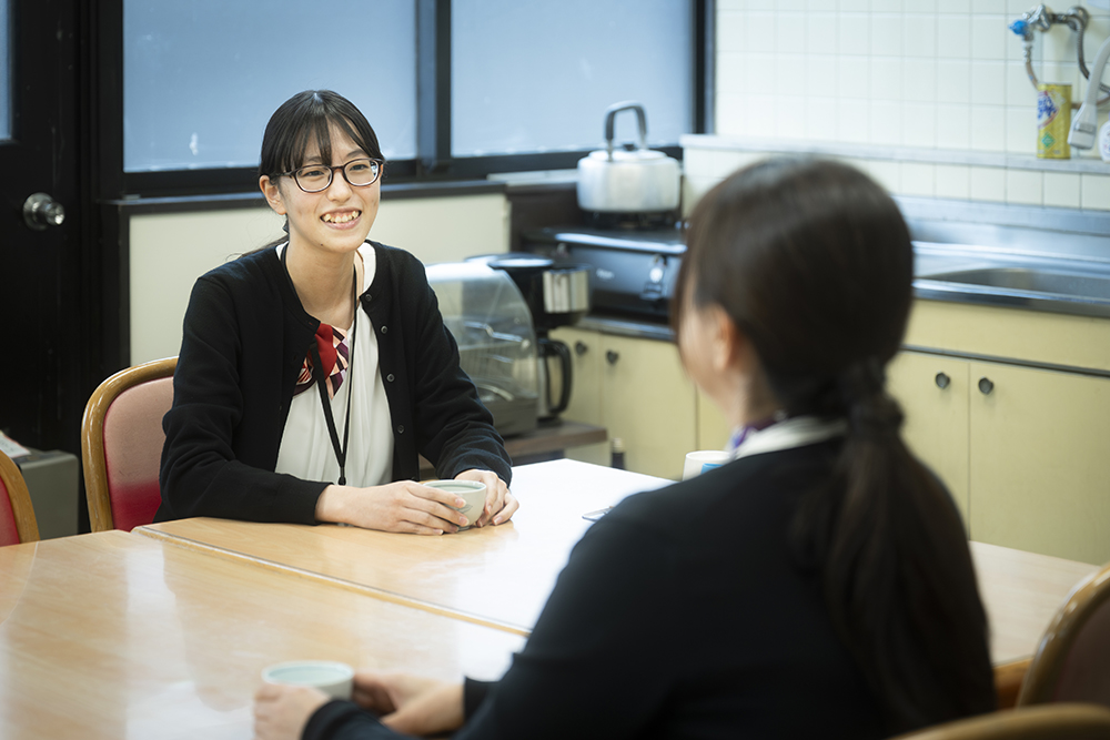 年齢層はさまざまですが、とてもアットホームな雰囲気です。下の名前で呼びあったり、休憩時間には談笑したり、和やかに働くことができています。お客様に対しても「いらっしゃいませ」というかしこまった感じではなく、「おはようございます」「こんにちは」という挨拶でお迎えするほど距離が近いです。