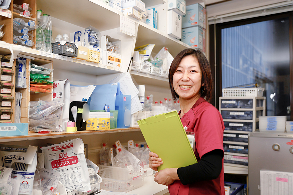 シングルマザーになったことを機に、兵庫県から両親が暮らす愛媛県松山市へ移住。野本記念病院に入職後は外来を担当し、現在は一般病棟勤務で夜勤にも従事しています。看護師歴28年の経験を生かし、若手看護師の相談役としてサポートにも力を尽くしています。