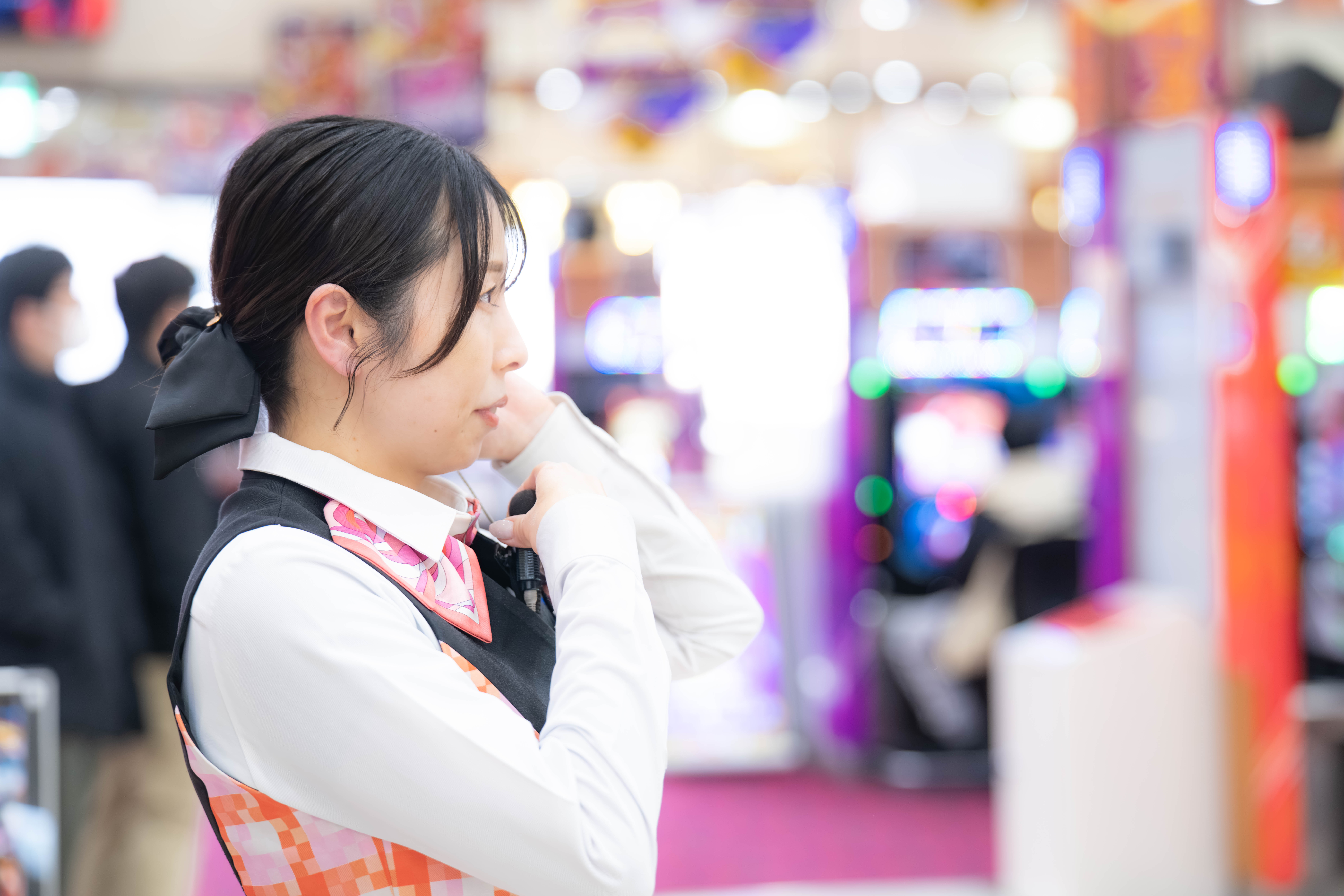 引き続き各業務を行います。シフトによっては指令室からホールへ出て、景品関係の業者対応、ホールの温度調整、接客業務などを行う日もあります。