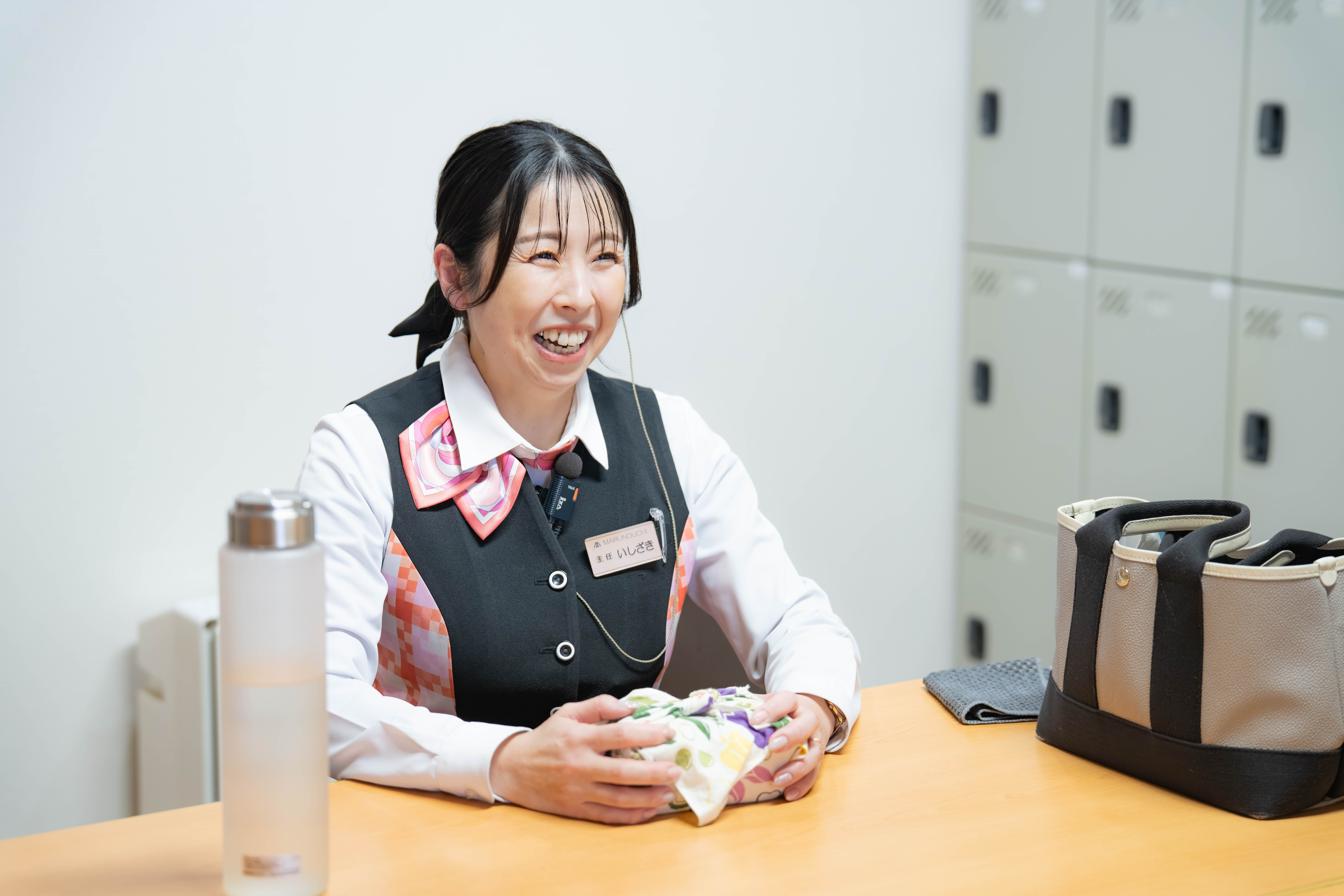 バックヤードに休憩室があるので、そこで持参したお弁当を食べています。合間に同僚と談笑したりと、リラックスした時間を過ごしています。